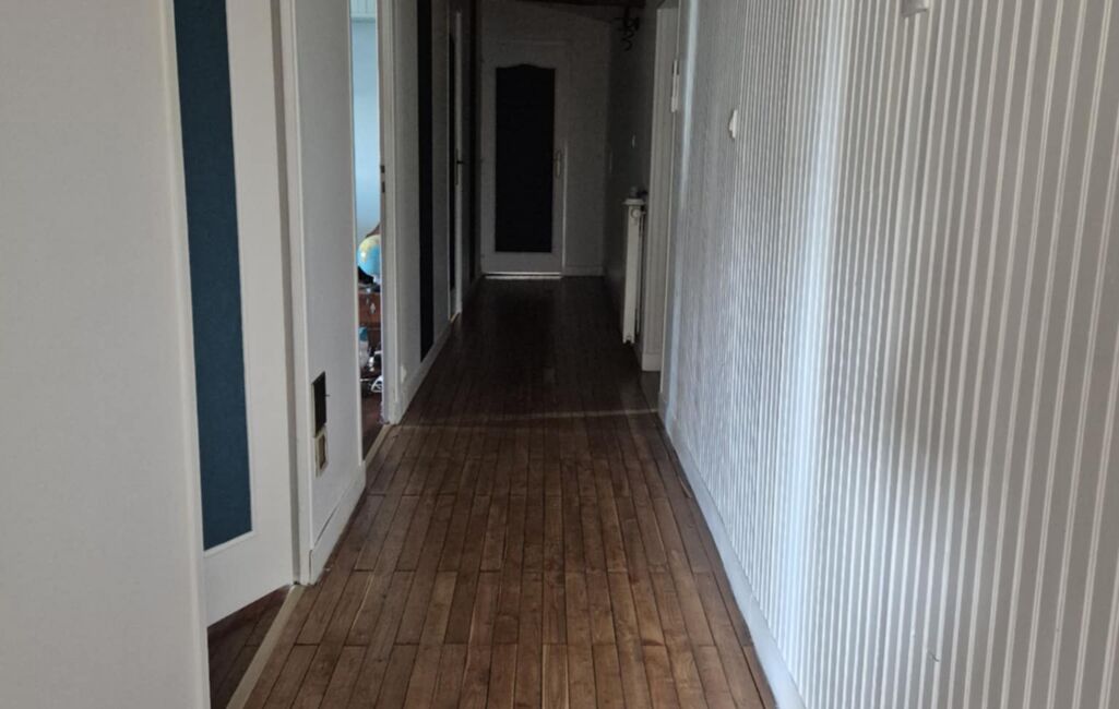 A l'étage vous aurez un palier avec une chambre mansardée et un couloir donnant sur quatre chambres et une salle de bain avec WC.