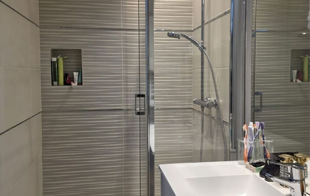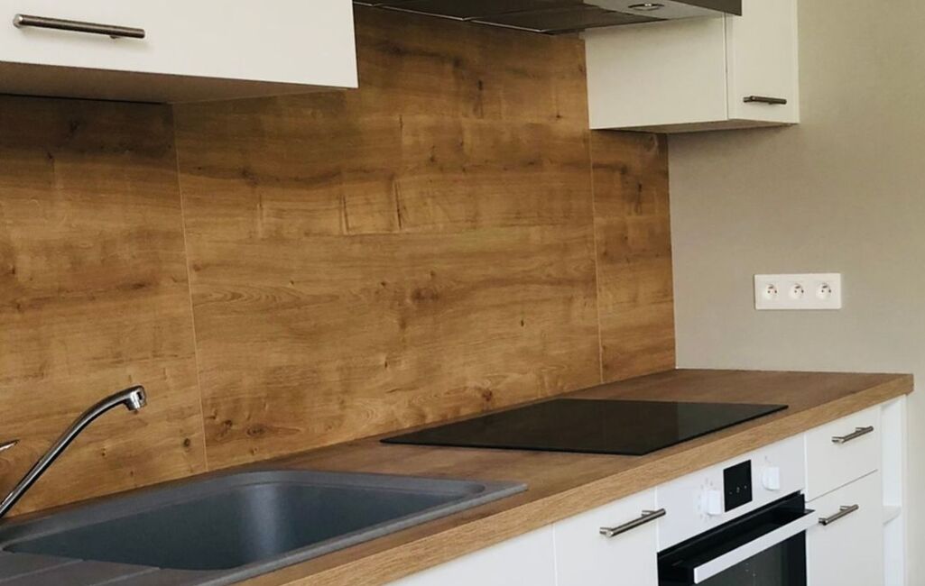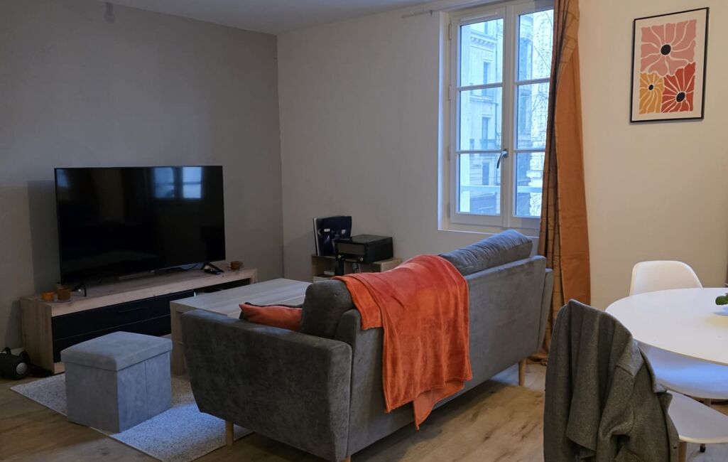 Le premier appartement développe environ 48 m². Il comprend une pièce de vie lumineuse avec cuisine aménagée, une chambre indépendante et une salle d’eau. Il est actuellement loué 720 € hors charges.