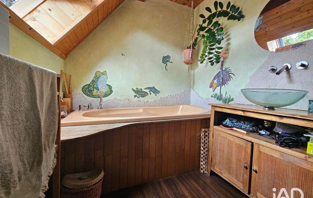 Dans un cadre préservé et verdoyant, cette propriété hors normes séduira les amoureux de lieux singuliers, de volumes atypiques et de créativité. Bien plus qu'une maison, c'est un véritable lieu de vie artistique, mêlant habitat, espace professionnel, bien-être et connexion à la nature. Dès l'entrée, les volumes du rez-de-chaussée donnent le ton : des espaces modulables pensés pour conjuguer vie personnelle et activité indépendante, ou accueillir des projets créatifs. Plusieurs accès distincts permettent une véritable liberté d'usage. À l'étage, sous les combles, l'ambiance devient plus intime. Une cuisine compacte mais élégamment pensée, en feuille de pierre et matériaux haut de gamme, s'ouvre sur un vaste séjour traversant baigné de lumière. Une salle de bain complète ce niveau. En mezzanine, une chambre ouverte prend place sous la charpente, comme un cocon perché. Côté confort, la maison bénéficie d'un chauffage performant par pompe à chaleur eau/eau, combinant efficacité énergétique et respect de l'environnement. Un choix cohérent avec l'esprit de ce lieu pensé pour durer et vivre autrement. À l'extérieur, le charme opère immédiatement :