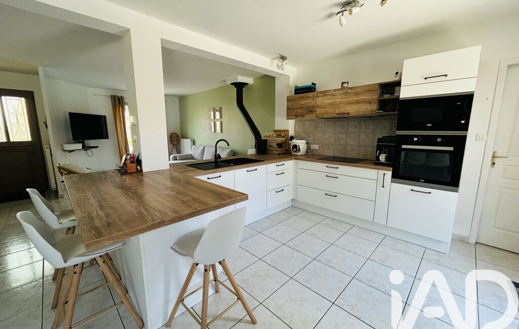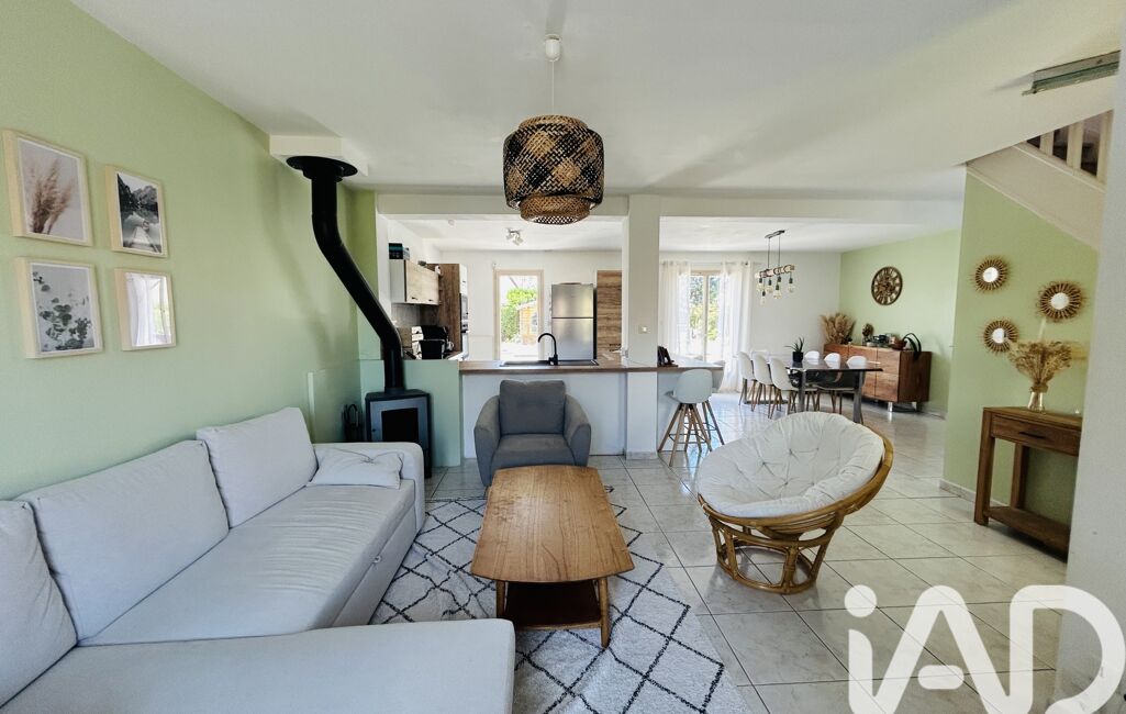 Édifiée sur un terrain clos et arboré de 796 m², elle se compose au rez-de-chaussée d’un lumineux salon-séjour avec cuisine ouverte, de deux chambres, d’une salle de bain avec WC, ainsi que d’une buanderie et d’un garage.