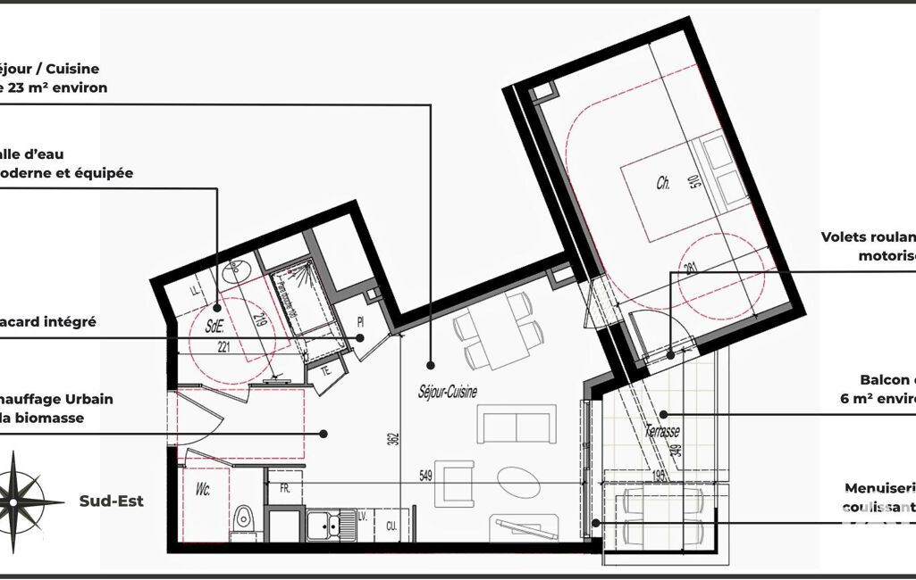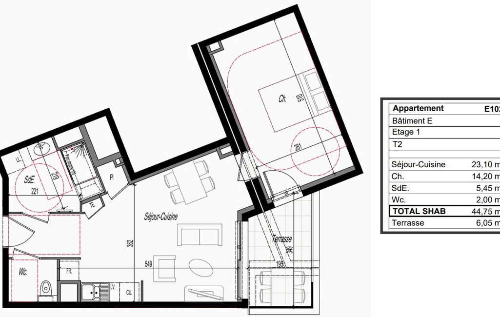 - Surface habitable : 45 m²