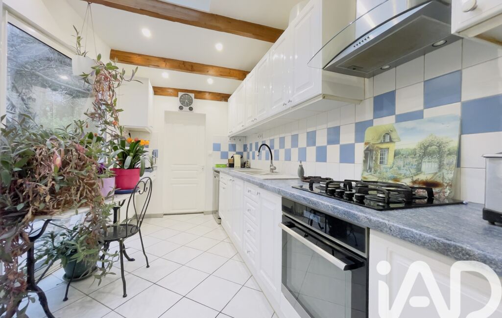 Le rez-de-chaussée accueille une pièce de vie chaleureuse et lumineuse et une cuisine équipée, ouverte directement sur une terrasse intimiste et un jardin arboré sans vis-à-vis.