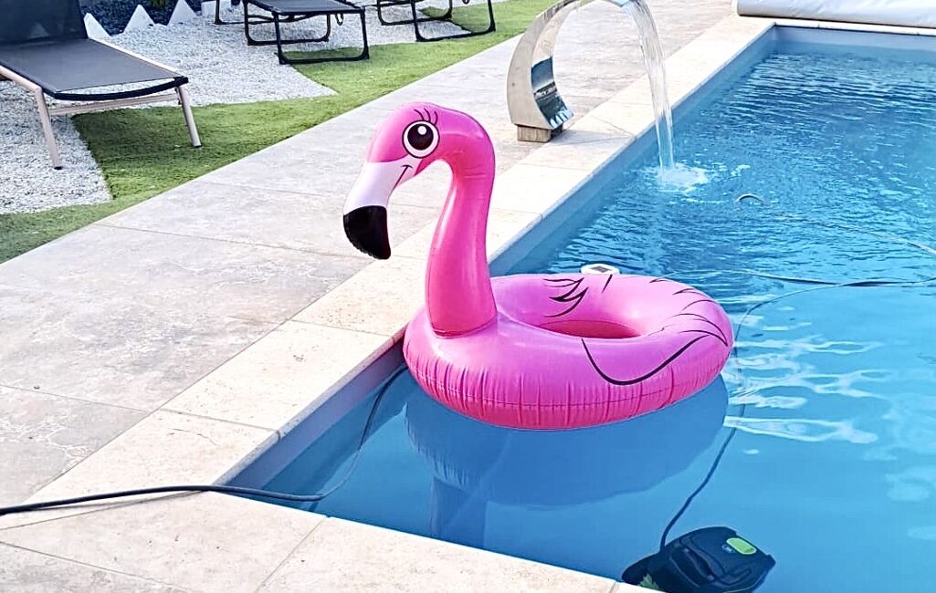 •Piscine 7x4m chauffée par pompe à chaleur , couverture verrouillée = sécurité enfant