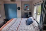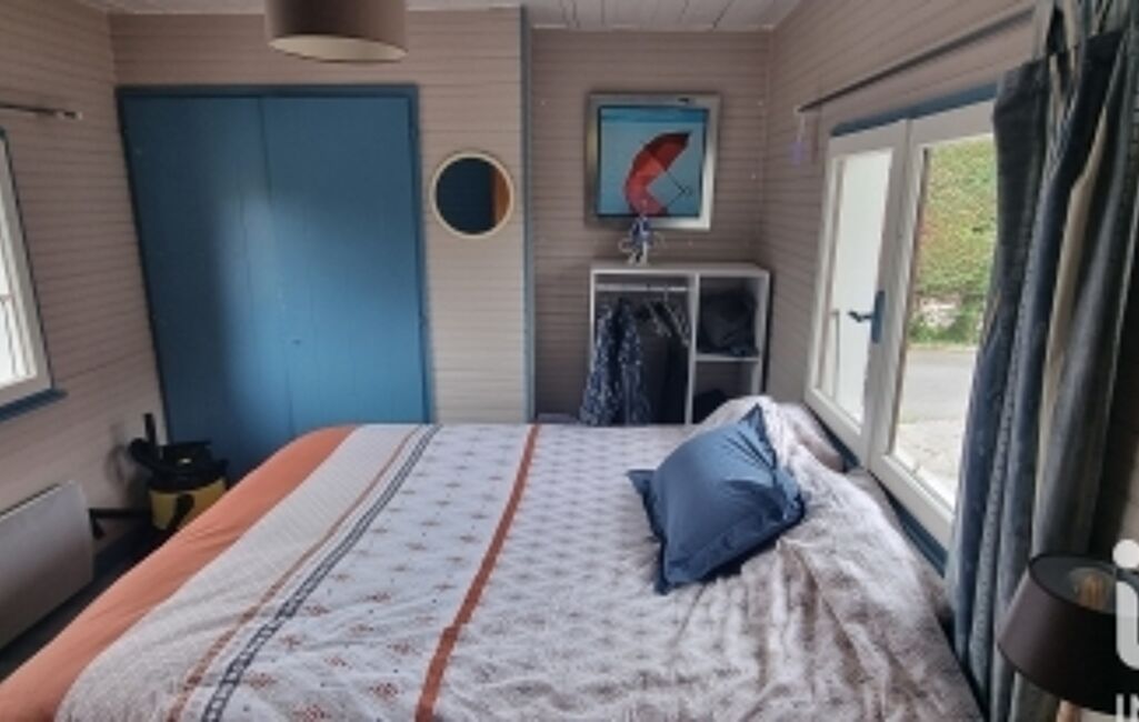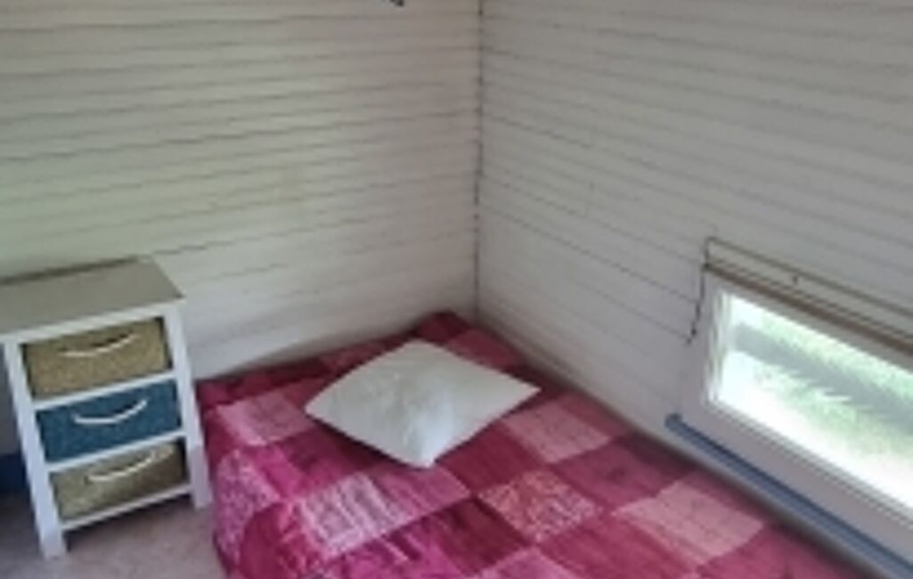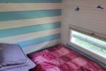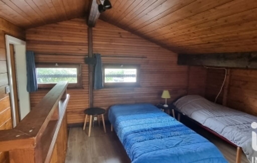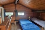 À l’étage, un espace nuit en mezzanine complété par deux couchettes permet d’accueillir plusieurs couchages.