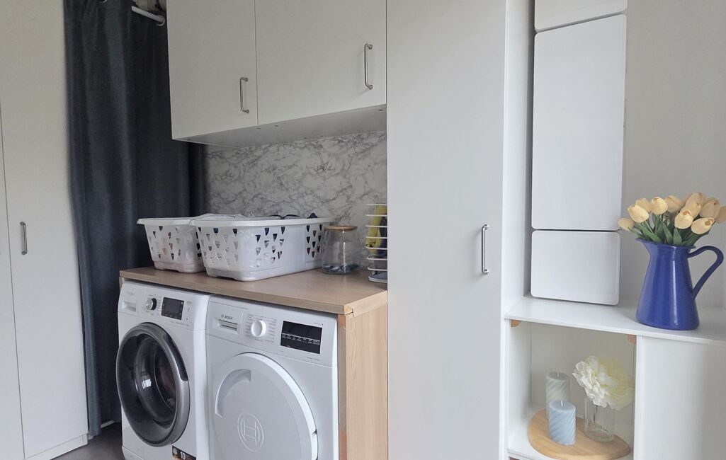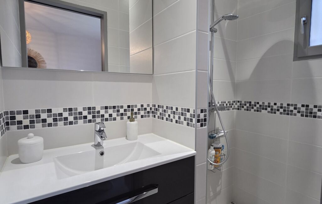 Elle se compose d’une entrée avec rangements, d’un bel espace de vie lumineux comprenant un salon et une salle à manger, d’une cuisine équipée et aménagée, d’une buanderie, ainsi que d’une suite parentale avec chambre et salle d’eau au rez-de-chaussée, sans oublier un WC séparé.