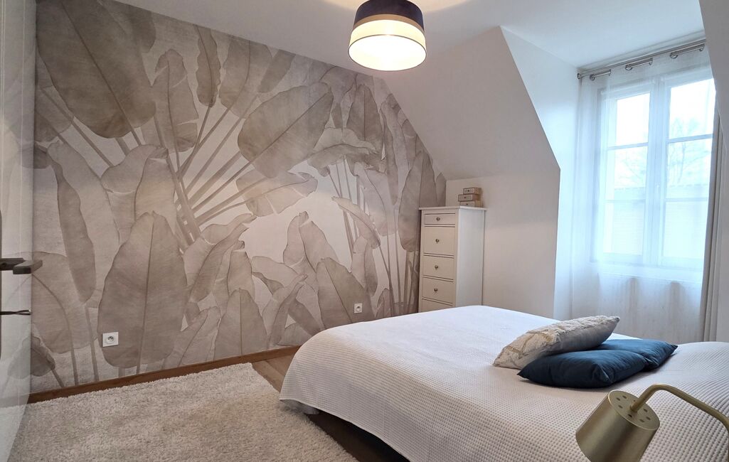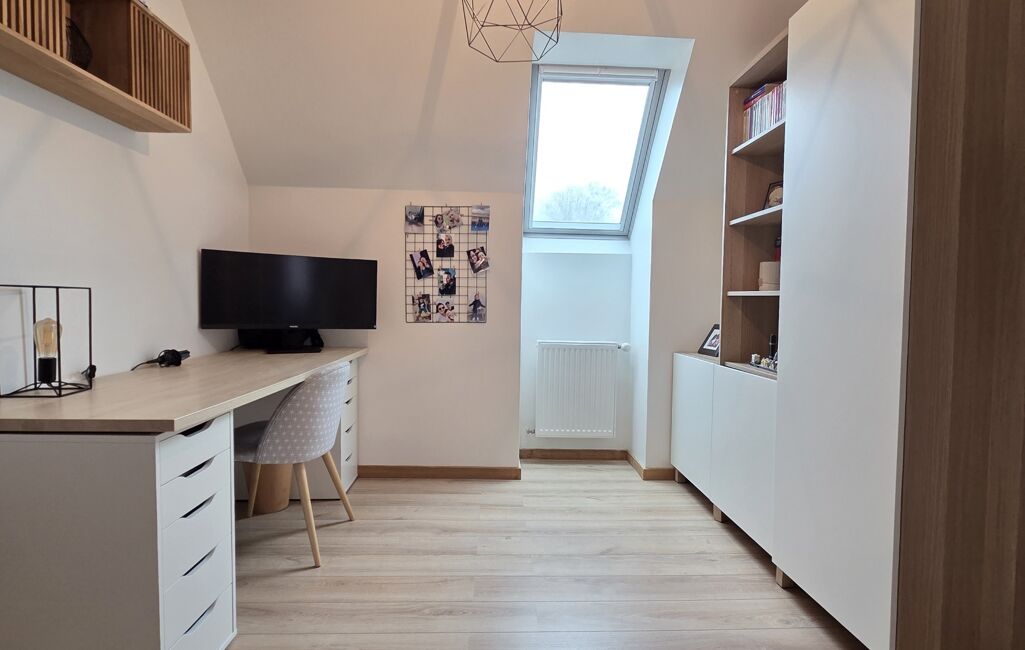À l’étage, vous découvrirez un palier pouvant servir de bureau ou de coin lecture, trois belles chambres, ainsi qu’une salle d’eau avec WC et double vasque.