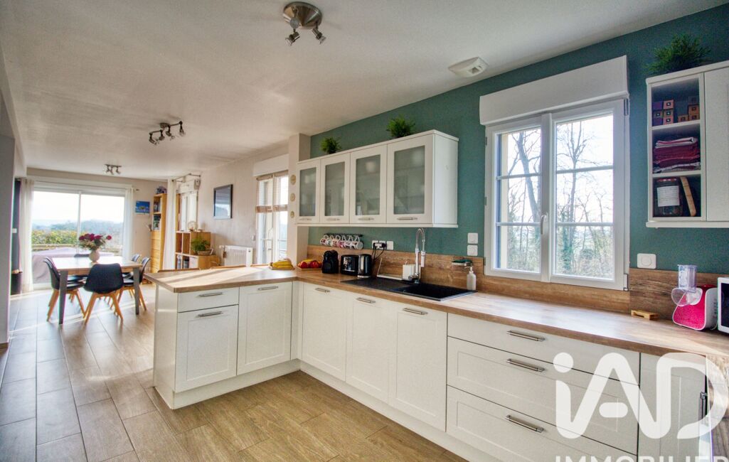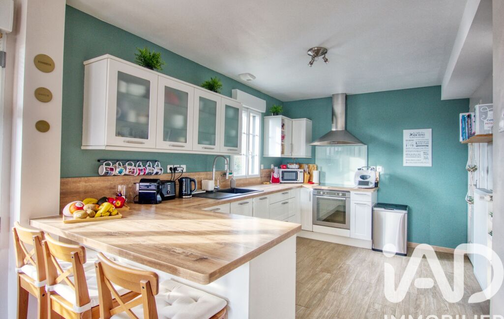 Edifiée sur un sous-sol total, elle nous accueille au rez-de-chaussée par une entrée avec rangement, suivie d'une spacieuse et lumineuse pièce de vie composée d'un salon/salle à manger agrémenté d'un poêle à bois, ouverte sur la cuisine aménagée et équipée.