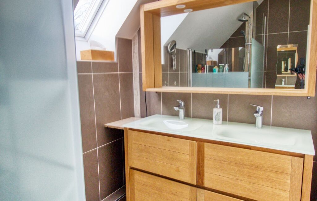 Une salle de bains et un wc séparé viennent agrémenter la partie nuit.