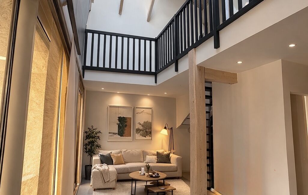 Rénové par un architecte esprit loft, ce bien est composé au rez de chaussée d'une pièce de vie avec cuisine aménagée