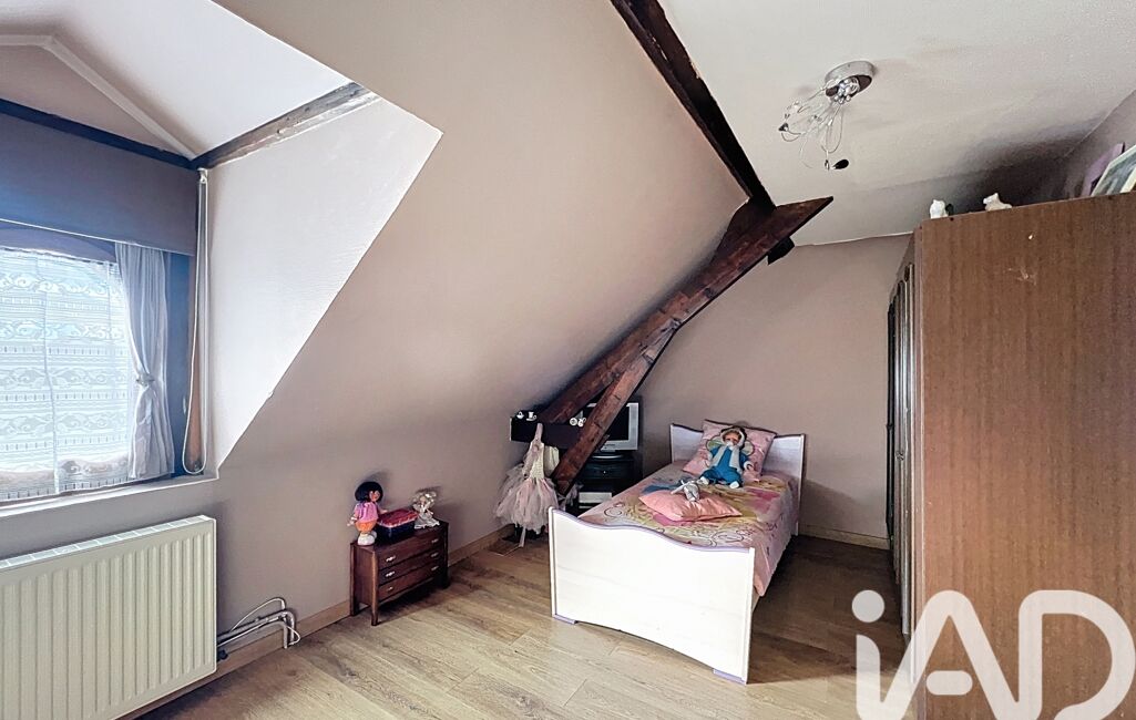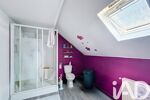 À l’étage, vous trouverez deux chambres mansardées d’environ 9 m² et 12,5 m² habitables, une salle de douche avec double vasque et WC, ainsi qu’un débarras.