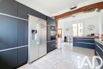 Une cuisine d’environ 23 m², entièrement sur mesure, rénovée en 2022, mêlant design, fonctionnalité et matériaux de qualité, véritable pièce maîtresse de la maison.