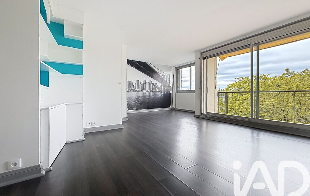 Une cuisine aménagée ouverte sur un séjour spacieux, prolongé par un balcon offrant une vue dégagée sur les environs