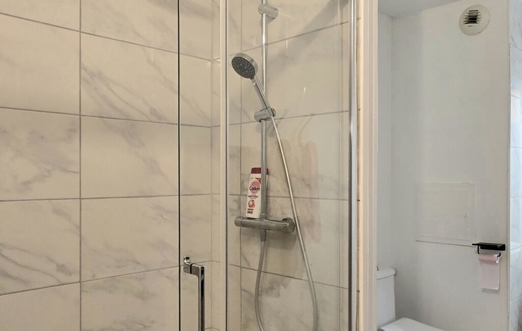 Une salle de douche avec toilettes