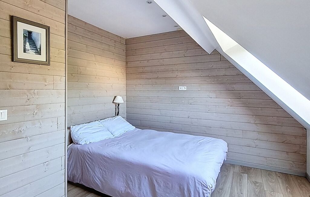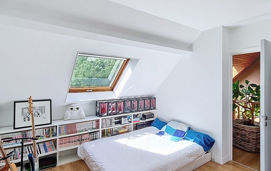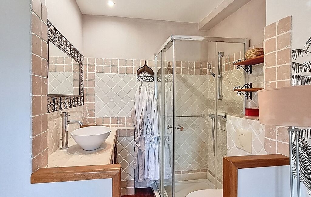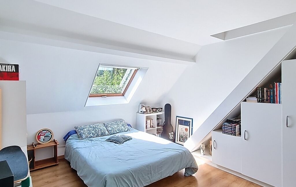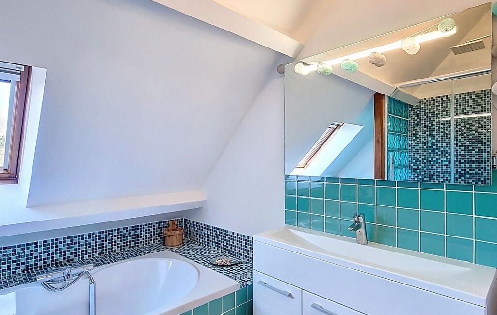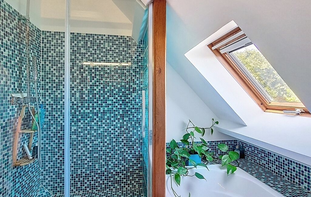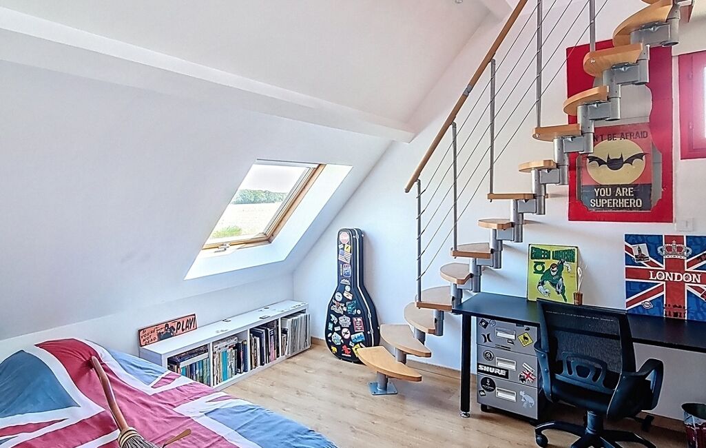À l’étage, l’espace nuit accueille quatre chambres supplémentaires, dont deux suites avec leur propre salle d’eau. Une salle de bain indépendante et un WC viennent compléter l’ensemble. Au total, la maison offre 5 chambres dont 3 avec salle d’eau privative, un véritable atout pour une grande famille ou pour recevoir en toute sérénité.