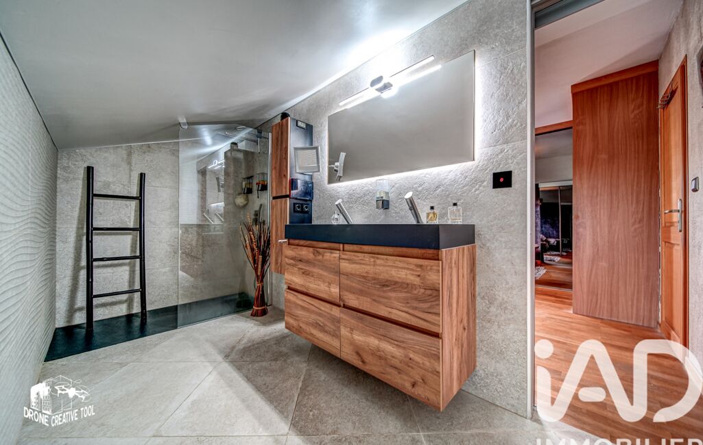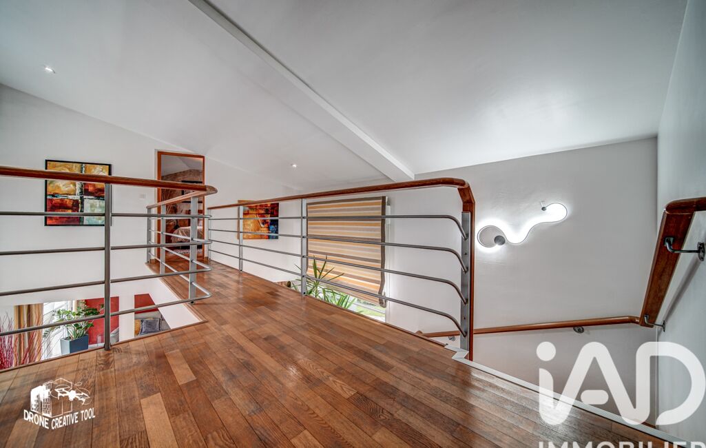 À l’étage, une élégante passerelle dessert une mezzanine faisant office de bureau, une chambre parentale avec salle d’eau privative, une chambre avec dressing, une troisième chambre avec rangements intégrés, un toilette indépendant, un espace de rangement en sous-pente ainsi qu’une grande salle de bain familiale. Chaque espace est intelligemment optimisé pour un confort de vie optimal.
