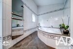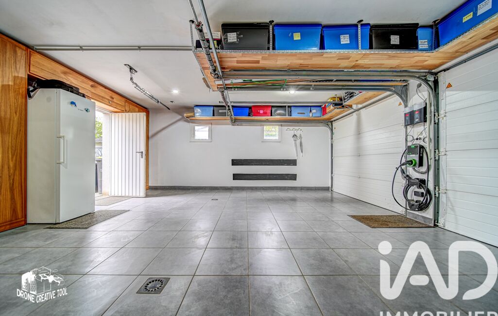 Un garage double carrelé avec portes motorisées et une chaufferie complètent ce bien.