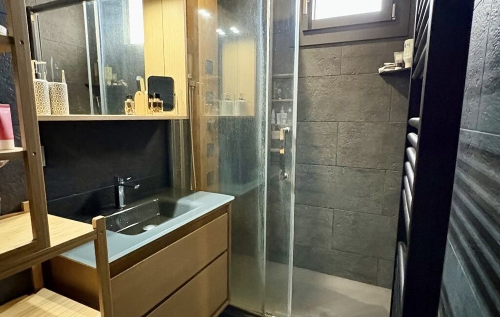 Côté nuit, vous trouverez deux chambres confortables avec rangements, ainsi qu’une salle d’eau moderne avec douche, récemment refaite.