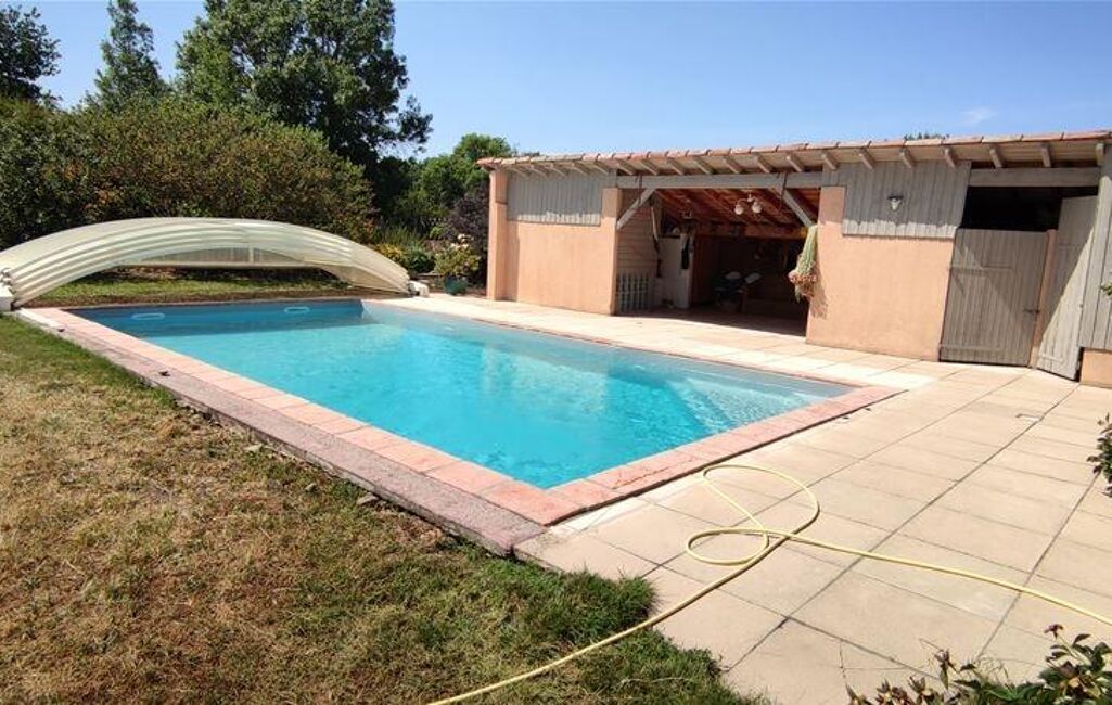 Votre agence 123webimmo l'immobilier au meilleur prix vous présente : Issue d'une division parcellaire, Cette villa de 10 pièces implantée sur une parcelle de 1650m², au calme, au séjour traversant de 70m2 avec poêle et cheminée et donnant sur 2 terrasses, dispose d'une cuisine équipée de 20m2, d'un cellier avec accès depuis l'extérieur, et d'une suite parentale de 27m2. A l'étage, 4 chambres mansardées avec placard de 14 à 20m2, salle de bain et WC séparés. A l'extérieur, une piscine sécurisée au sel avec liner neuf, pool house, puits et arrosage intégré, grand potager, pas de nuisance ni de vis-à-vis. Panneaux solaire pour l'eau chaude sanitaire. Possibilité de construire un grand garage. Charme et potentiel.