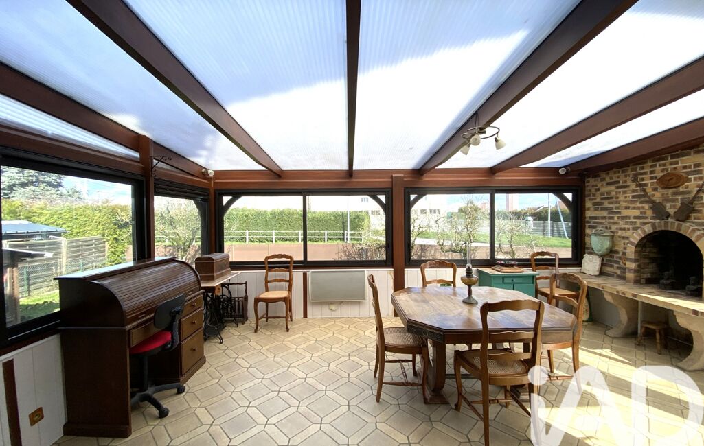 Cet espace se prolonge par une véranda baignée de lumière traversante, véritable pièce supplémentaire ouverte sur le jardin, avec accès direct à la terrasse.