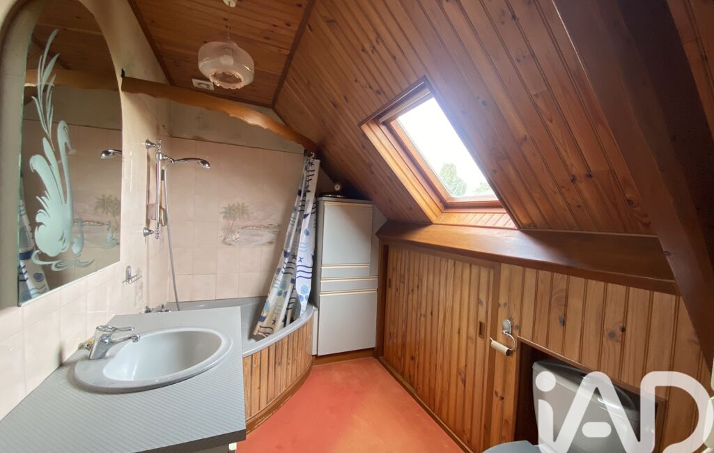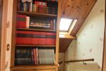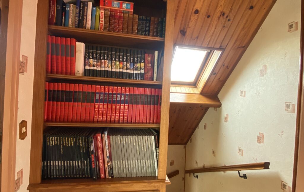 À l’étage, un palier avec bibliothèque dessert trois chambres confortables ainsi qu’une salle de bain avec WC.