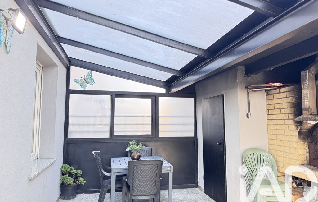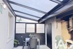 Une belle pièce de vie lumineuse avec salon, salle à manger et cuisine ouverte, donnant accès à une agréable véranda équipée d’un four à pizza et d’un barbecue, idéale pour recevoir.