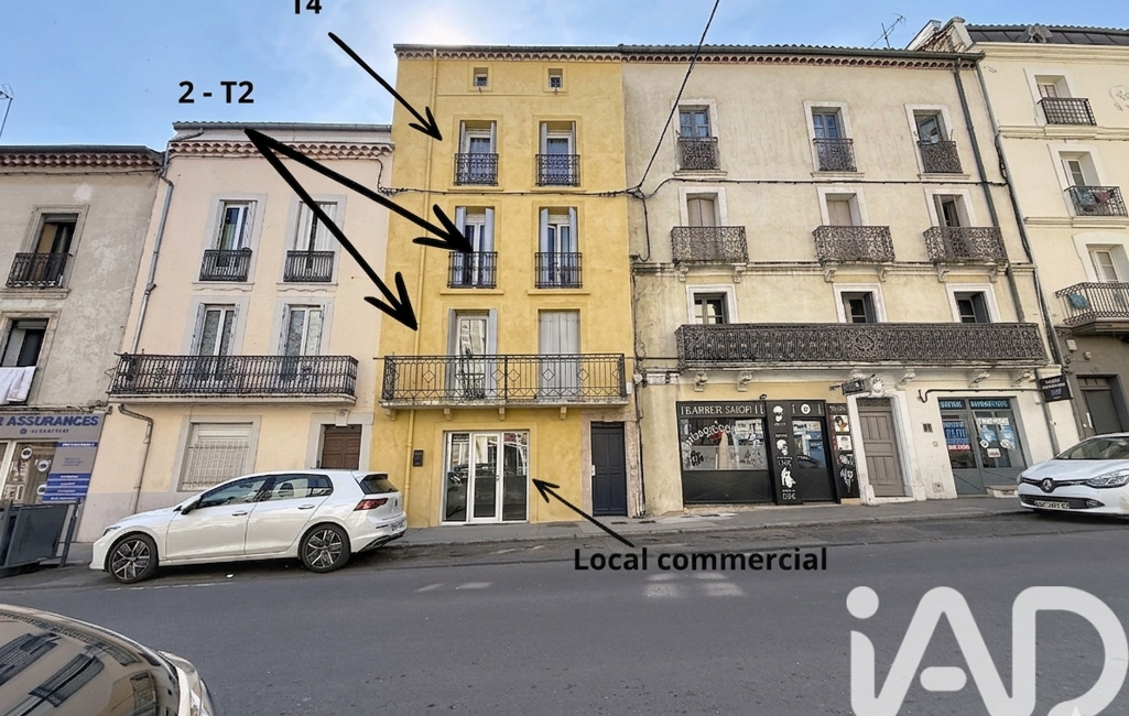 Configuration : 1 Local Commercial (bail 3/6/9) + 2 appartements T2 + 1 T4 Duplex (classé 3*).