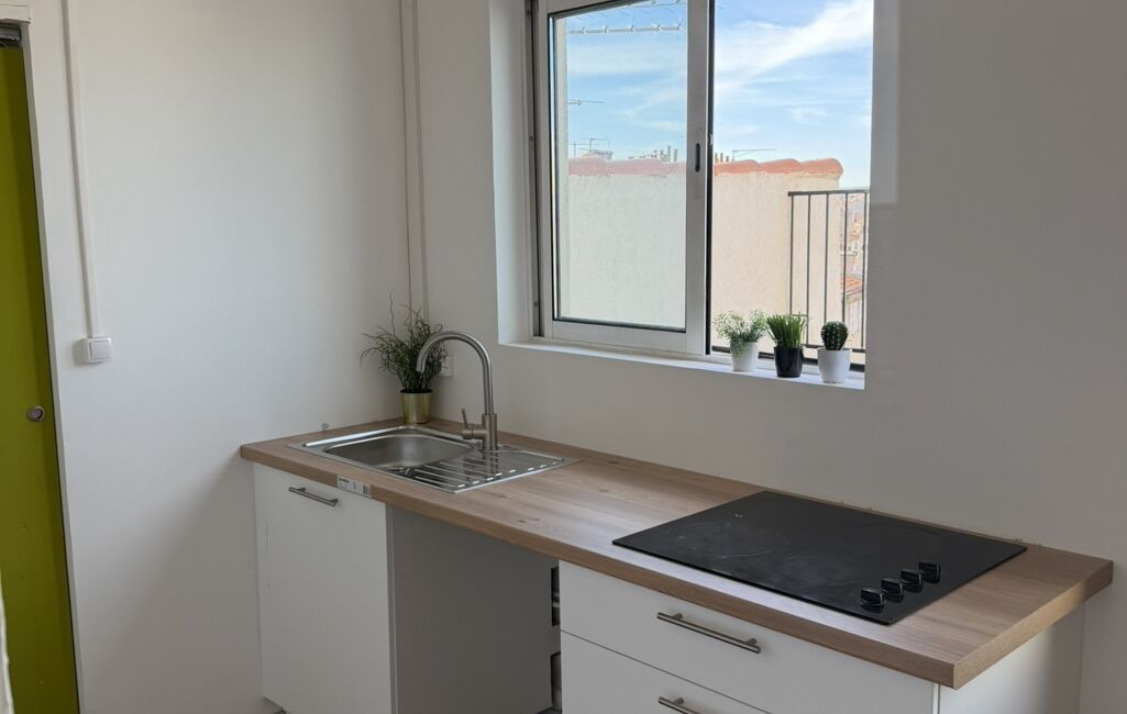 iad France - John-Steven Greenaway vous propose: Situé au cOEur du quartier dynamique de La Belle de Mai, en pleine transformation et particulièrement recherché pour son potentiel d’investissement, découvrez ce studio de 22 m² rénové, niché au 4ᵉ et dernier étage sans ascenseur d’un immeuble lui aussi entièrement réhabilité.