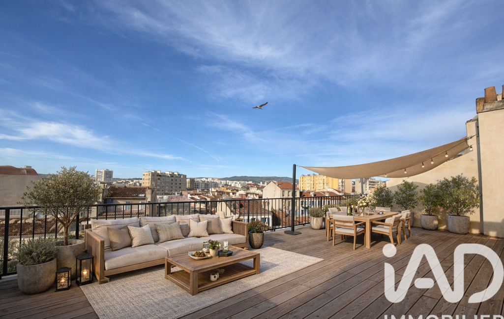 Mais le véritable atout de ce bien reste sa magnifique terrasse plein ciel de 25 m², sans aucun vis-à-vis, offrant une vue dégagée rare en centre-ville — un véritable espace de vie supplémentaire, idéal pour profiter du climat marseillais.