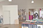 À l’étage, une mezzanine surplombant le volume principal accueille un bureau, une salle de réunion ainsi que deux sanitaires, offrant un cadre de travail fonctionnel et structuré.