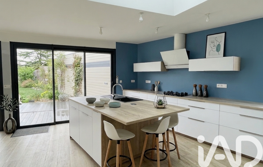 L'intérieur de la maison se compose au rez-de-chaussée d'une entrée, une belle pièce à vivre salon-séjour de 42 m2 avec un poêle à bois, une cuisine ouverte entièrement rénovée de 36m2 très lumineuse aménagée et équipée avec vue sur le jardin. Une chambre, un wc, une salle d'eau avec une douche, une buanderie, un cellier.
