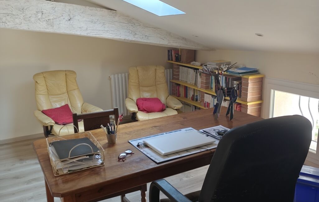 À l'étage, vous trouverez deux trés grandes chambres, une salle de bain avec wc, ainsi qu' un bureau.
