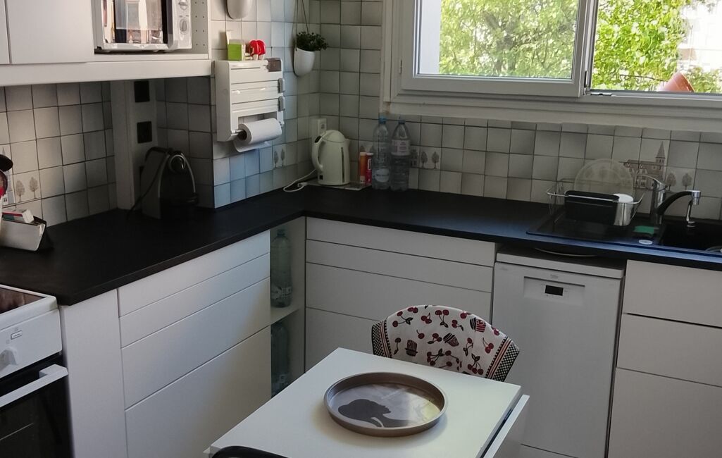 Deux belles chambres avec placards, cuisine refaite à neuve, W.C. indépendant, salle d'eau, cave en sous-sol.