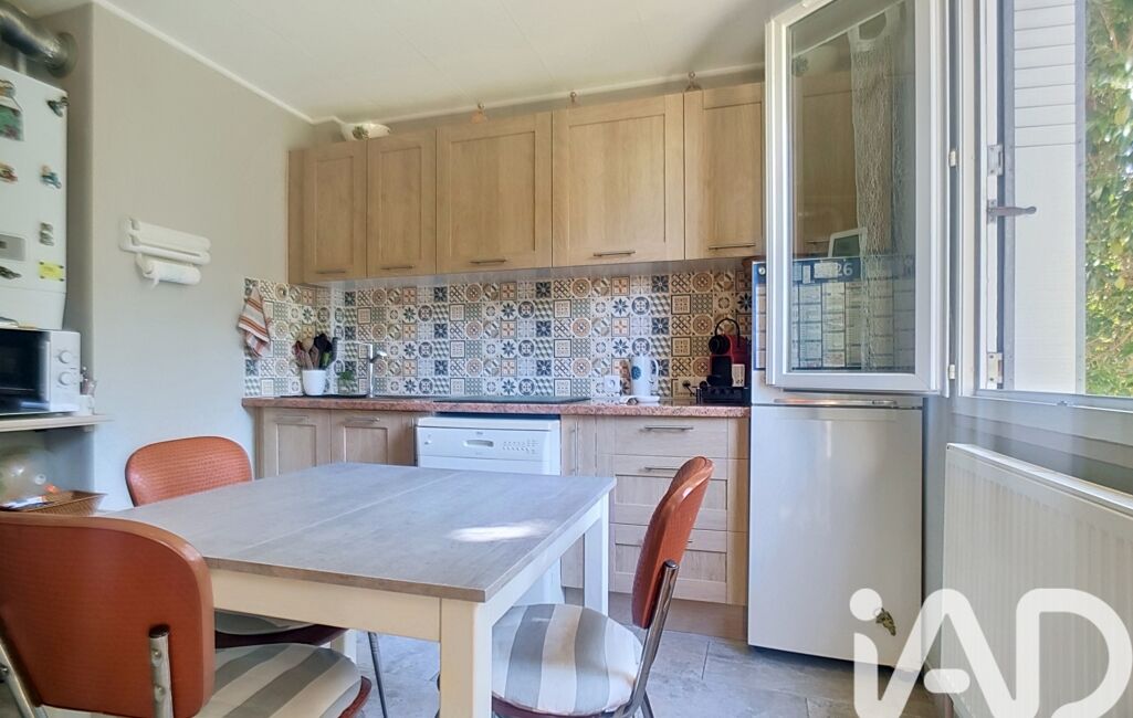 La cuisine, fonctionnelle et agréable, se prolonge par une loggia avec vue dégagée sur le parc arboré de la copropriété, apportant une véritable respiration au quotidien.