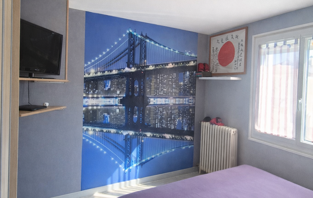 Le dernier étage propose un grand palier aménagé en second espace bureau, idéal pour le télétravail, ainsi qu’une belle chambre lumineuse.