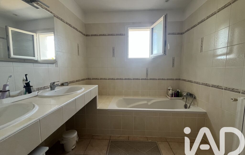 A l'étage les 3 chambres spacieuses avec placards offrent un bel espace de repos et de rangement. Une salle de bain moderne avec baignoire, douche, meuble 2 vasques et un WC séparé complète cette maison.