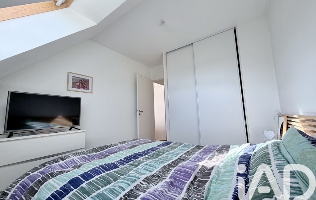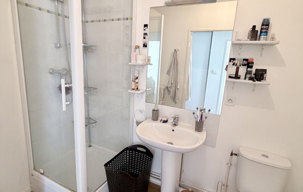 Côté nuit, une chambre lumineuse avec rangements offre un cadre reposant. La salle d’eau avec WC, pratique et bien agencée, complète l’ensemble.