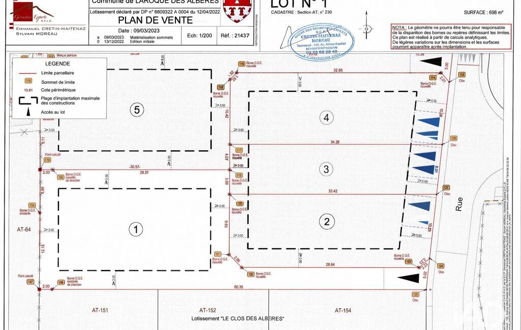 - Superficie terrain : 698 m²