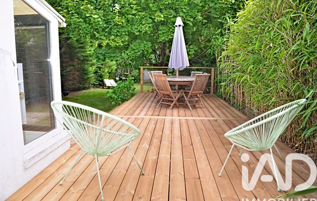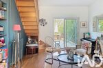 À l’extérieur, une terrasse en bois de 33 m² prolonge agréablement le séjour et donne sur un jardin arboré d’environ 350 m².