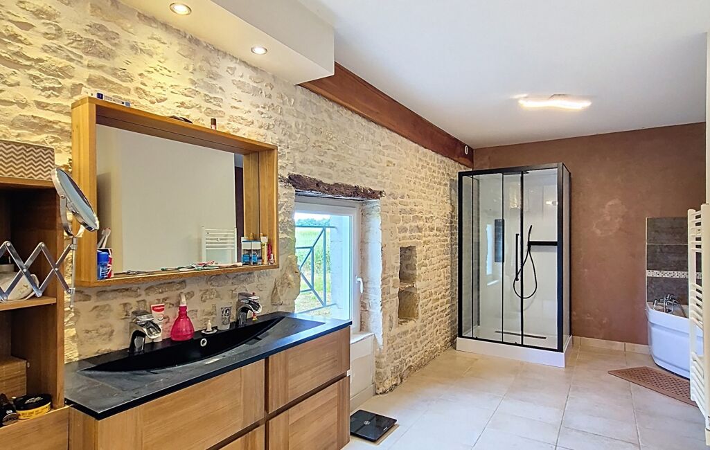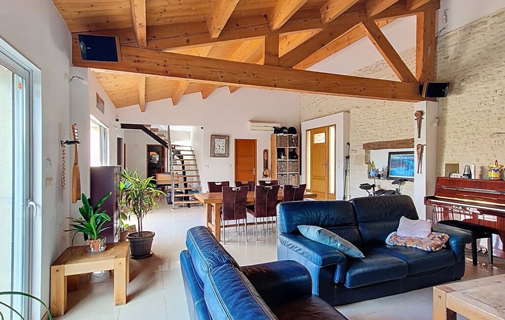 iad France - Stéphanie Lepinay vous propose: ** OPPORTUNITÉ **- SAINT SAUVEUR D'AUNIS - MAISON FAMILIALE 200m² AVEC SUITE PARENTALE XL ET TROIS CHAMBRES -GRAND TERRAIN 1990m² - GARAGE AVEC GALETAS 40m²- TERRASSE BOIS.