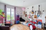 L’étage propose un large palier desservant un bureau, un espace de lecture, trois belles chambres, une salle de bain familiale équipée d’une baignoire et d’une douche, ainsi qu’un WC séparé.
