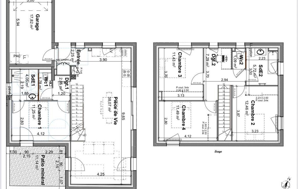 3 chambres à l’étage, salle de bain + WC séparés.