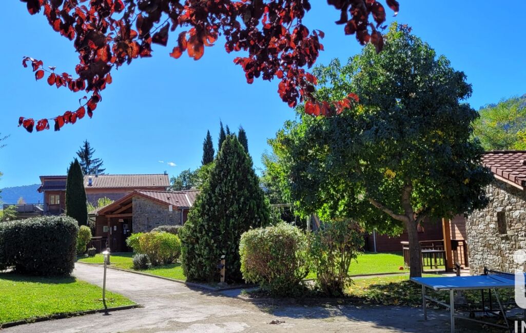 Situé sur une parcelle de 5900m², aménagée de jeux pour d'enfants et d'espaces de détente avec au total 12 chalets. Ce beau terrain arboré appartient à la copropriété.