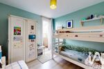 L’espace nuit se compose de trois chambres confortables, dont une avec un grand rangement intégré et un balcon avec une belle vue dégagée. Une salle de bain rénovée et des WC séparés complètent l’ensemble.
