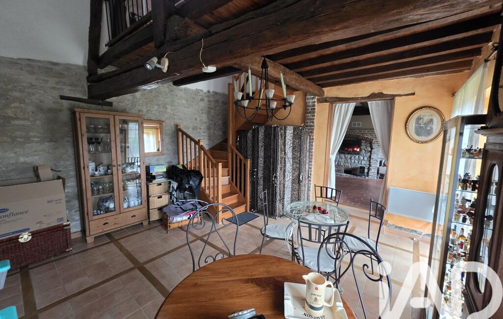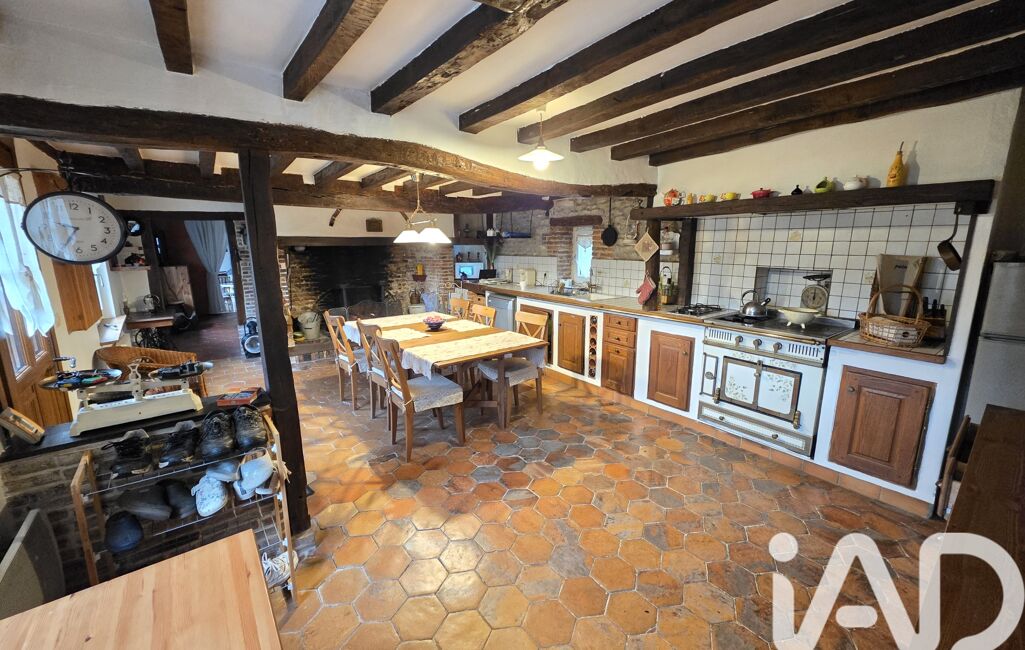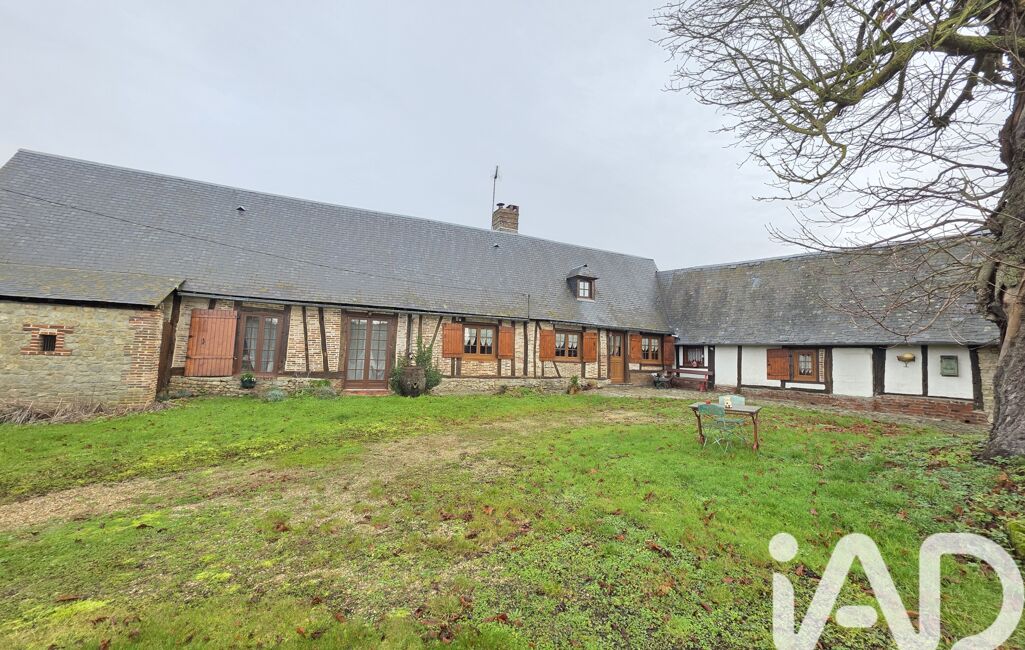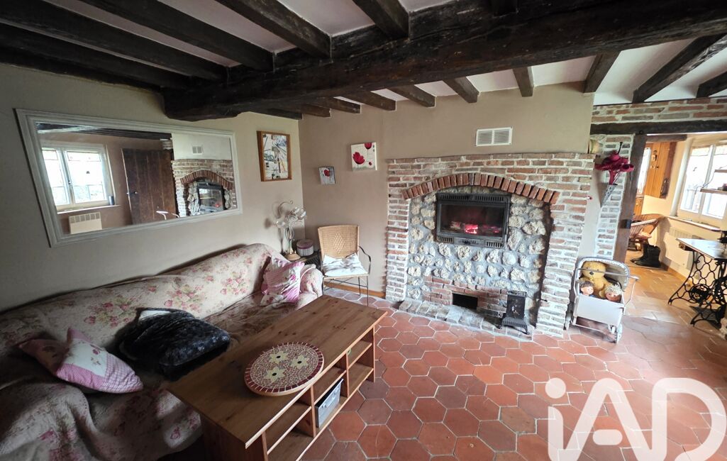 iad France - Emilie Hauduc vous propose: Dans un Charmant village du Pays de Bray, À 8 min de Gournay en Bray, Venez découvrir cette Charmante Longère pleine de caractère comprenant une entrée sur cuisine Aménagée équipée avec cheminée ouverte, un salon avec cheminée insert bois, une salle a manger avec toit cathédrale , 2 chambres, une salle de bain avec douche et un WC indépendant.