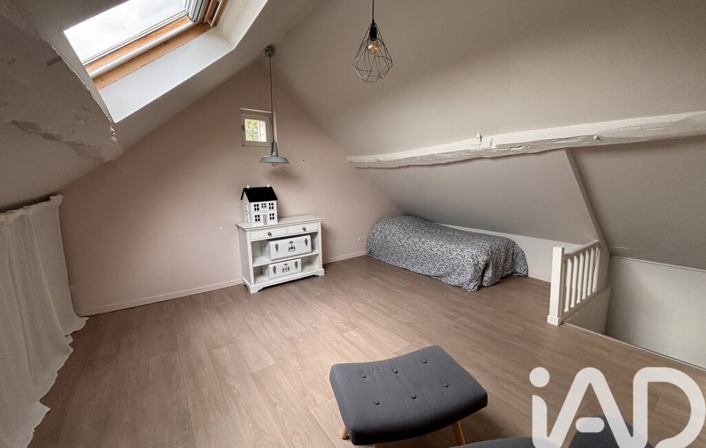 Le dernier niveau, sous les combles, accueille une troisième chambre mansardée à l’esprit douillet, parfaite pour un adolescent, un bureau ou une chambre d’amis.