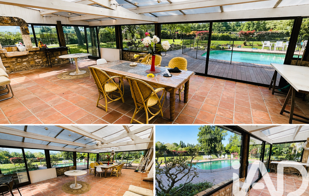 Les espaces de vie sont généreux et baignés de lumière, notamment grâce à une superbe véranda d’environ 44 m², véritable prolongement de la maison, ouverte sur l’extérieur.