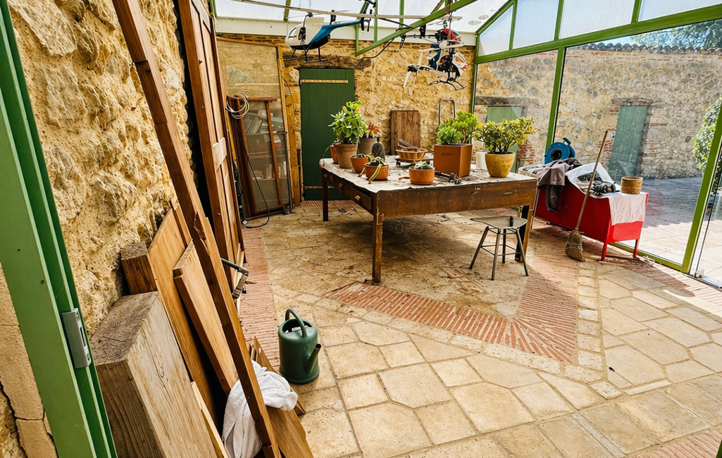 Une dépendance attenante vient compléter l’ensemble, avec un potentiel d’environ 80 m². Quelques travaux d’isolation restent à prévoir pour en faire un espace indépendant (gîte, logement ou bureau).