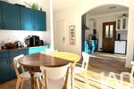 Elle dispose également d'une cuisine- salle à manger de 24m2, aménagée-équipée, (plaques, four, hotte, lave-vaisselle), d'une chambre avec sa salle d'eau au RDC et wc.