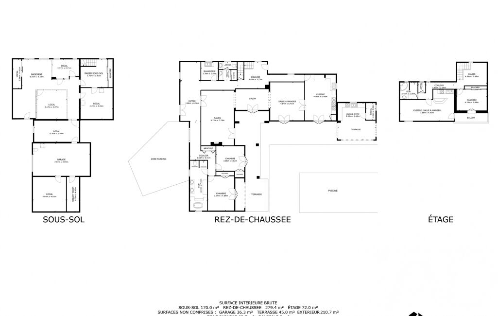 La maison, d'une surface totale de 493 m², se développe sur trois niveaux. Le sous-sol complet (197,5 m²), entièrement aménagé, comprend un ancien cabinet dentaire, un bureau, une pièce dédiée à la musique, une buanderie chaufferie, un grand garage ainsi qu’un local technique pour la piscine, offrant de nombreuses possibilités d’aménagement selon vos projets personnels ou professionnels.