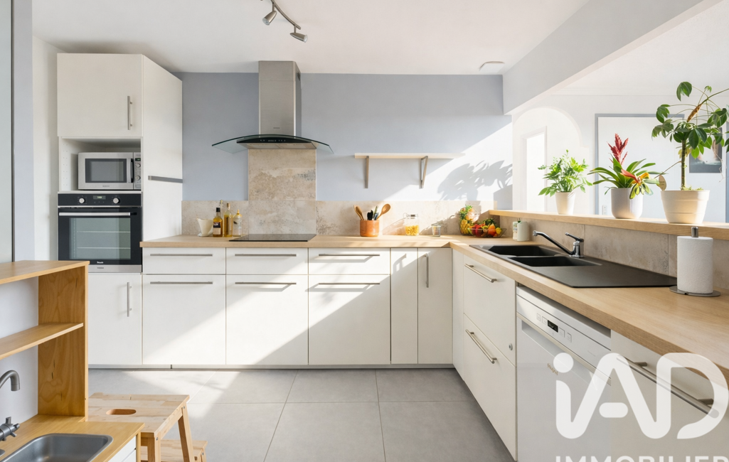 Baignée de lumière grâce à son exposition plein sud, elle offre une pièce de vie particulièrement conviviale de près de 50 m² comprenant salon, salle à manger et cuisine ouverte équipée — un espace idéal pour recevoir et profiter au quotidien.